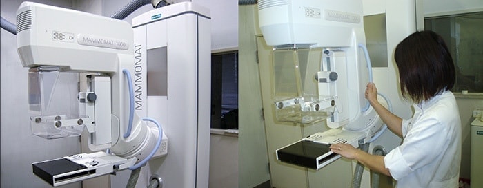 乳房撮影(マンモグラフィ)では女性技師が担当しています。診療の他に健診でも乳房撮影を行なっています。