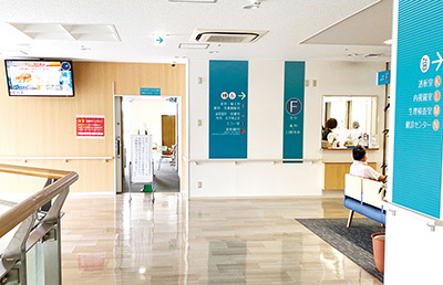 2階の「患者ラウンジ」を外来患者さまへのリハビリテーションの施行場所に変更いたしました。入院患者さまとのリハビリ施行場所を分けて、病棟への感染リスクを防ぐことが目的です。