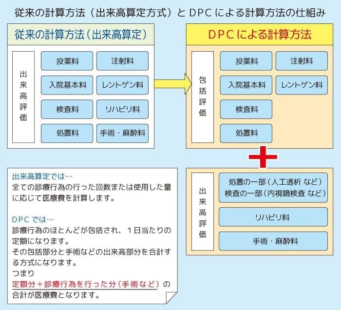 入院医療費はDPC(診断群分類別包括評価)によって 計算されます。